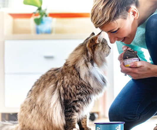5. Si el gato prefiere la comida húmeda, agregar agua al alimento seco y tritúrelo para humedecerlo.